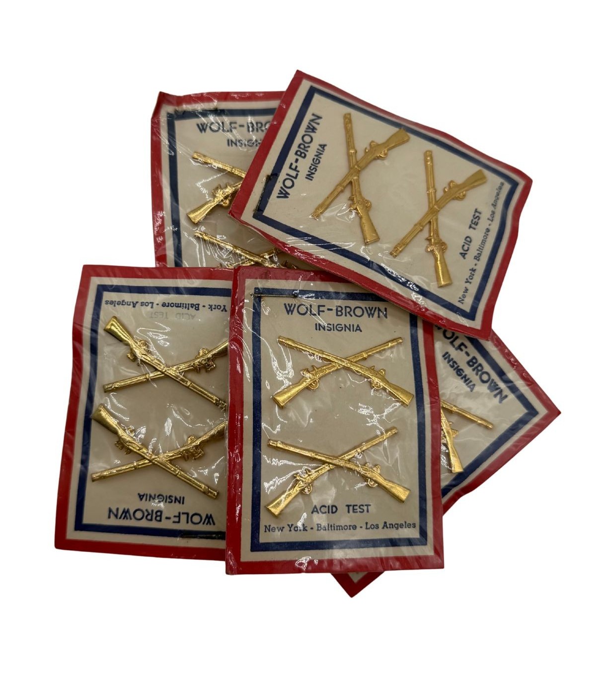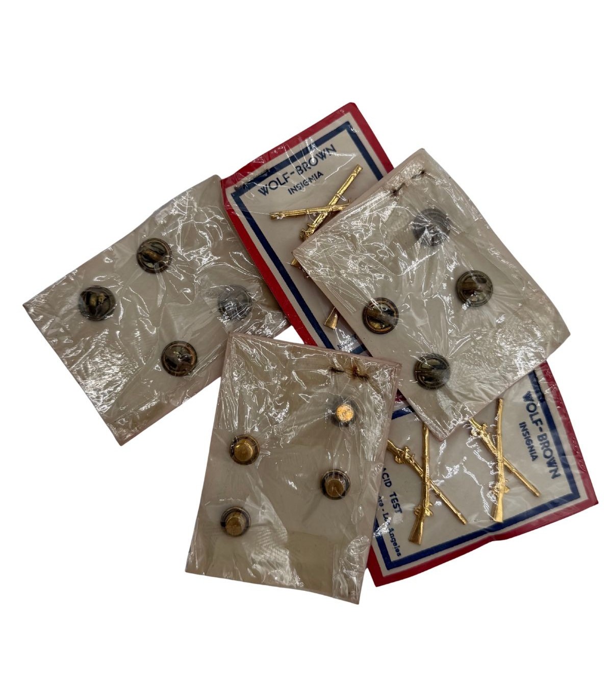 Fabricant : Wolf-Brown, marquage complet sur le carton et au revers des insignes.