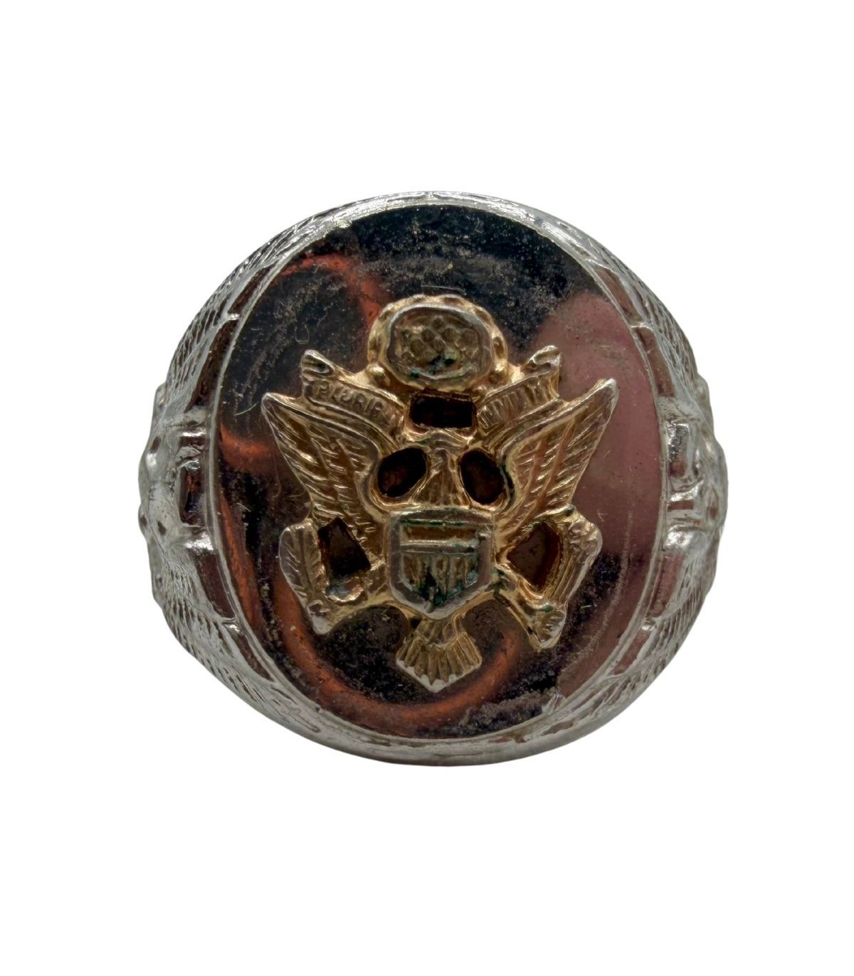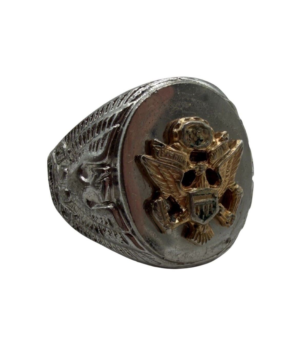 La chevalière militaire est bien plus qu'un simple bijou : elle est le témoin de l'appartenance à l'US Army et accompagne souvent le soldat bien après son retour à la vie civile. Ce modèle spécifique, alliant l'argent et l'or, était l'un des modèles les plus raffinés disponibles dans les bijouteries civiles et les PX (Post Exchanges) de l'époque.