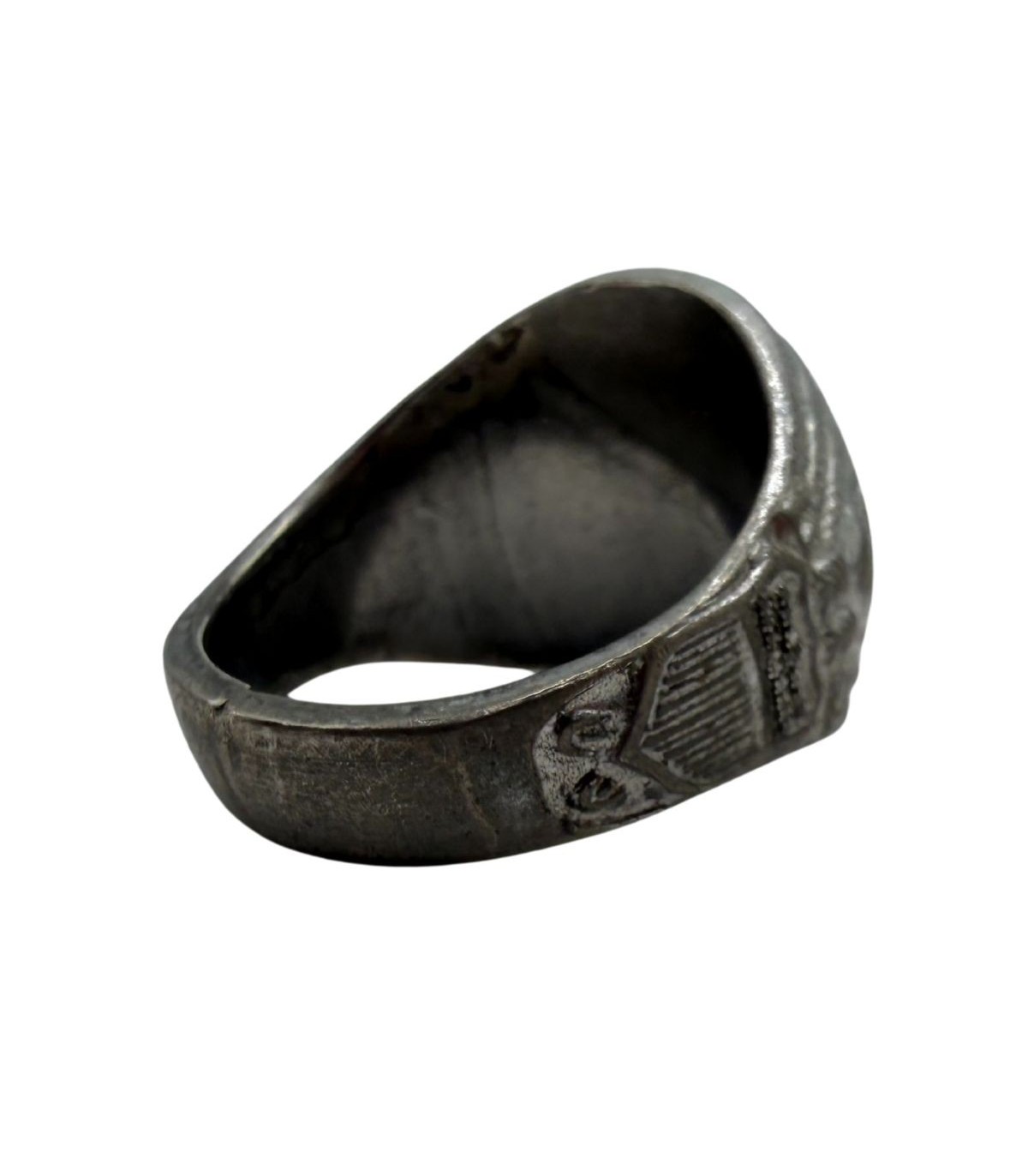 Détails latéraux : Les flancs de la bague comportent généralement des motifs patriotiques ou militaires finement sculptés dans la masse.