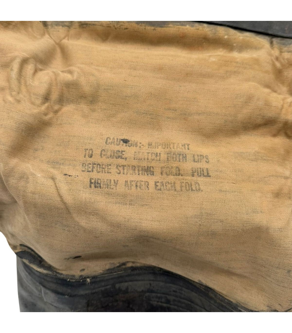 Fabriqué en toile caoutchoutée par RUBBER CO., il assurait l’étanchéité face aux progressions dans l’eau.