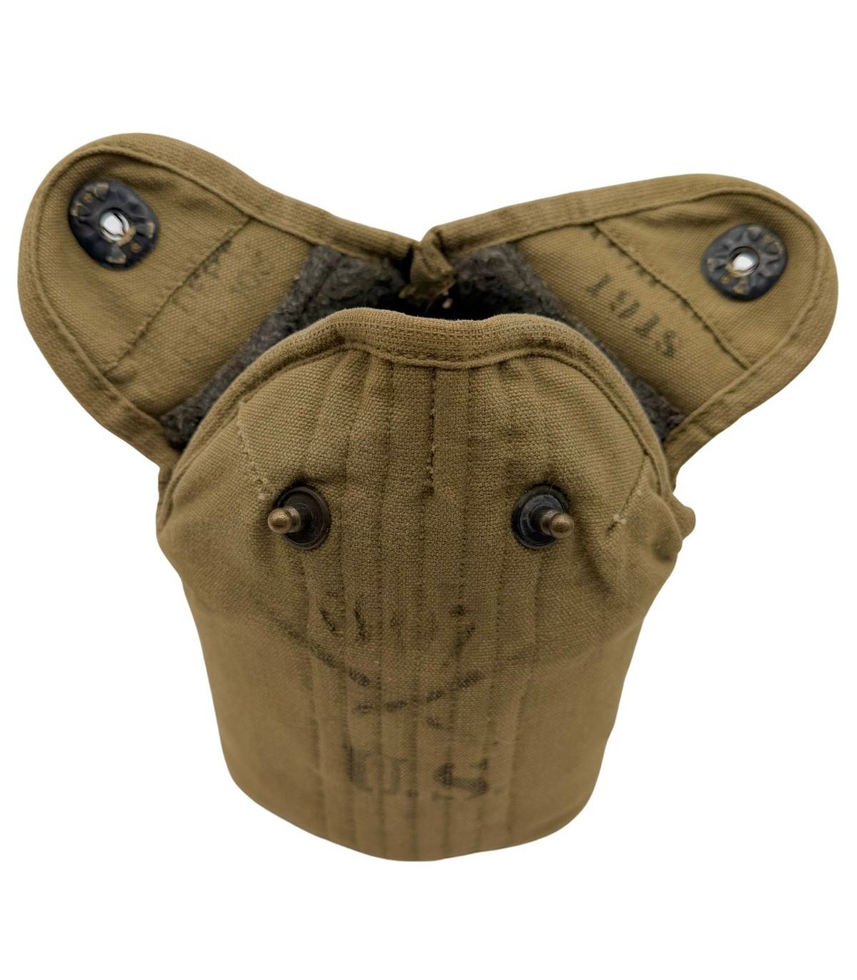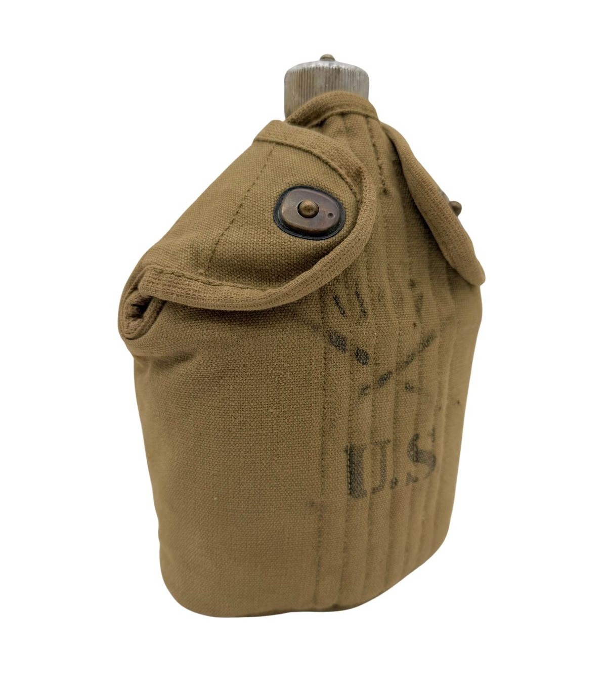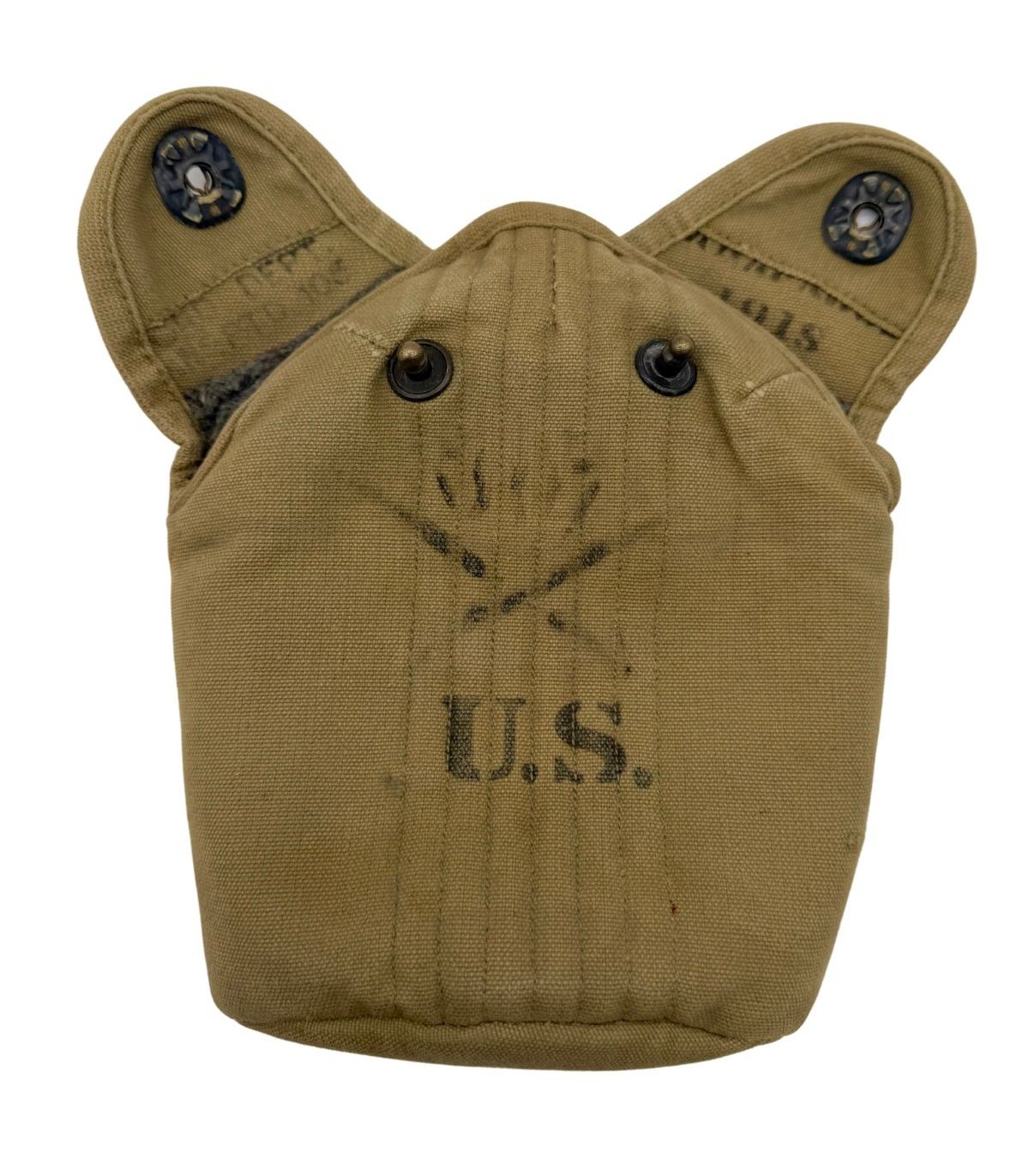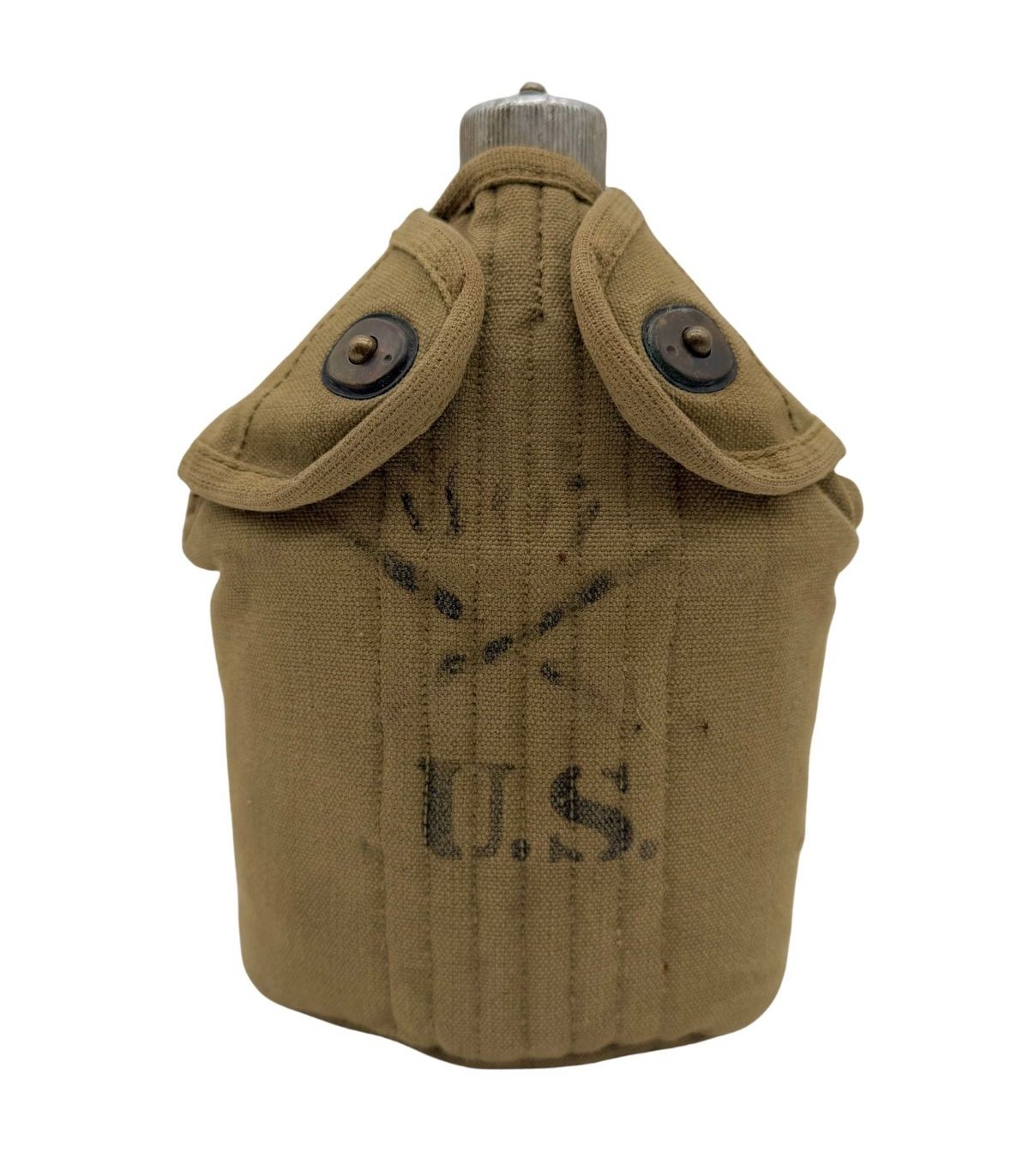 Régimentage : La housse (ou le bidon) présente des marquages d'unité (Stencils ou manuscrits), offrant un précieux témoignage sur le parcours de l'objet au sein des forces américaines.