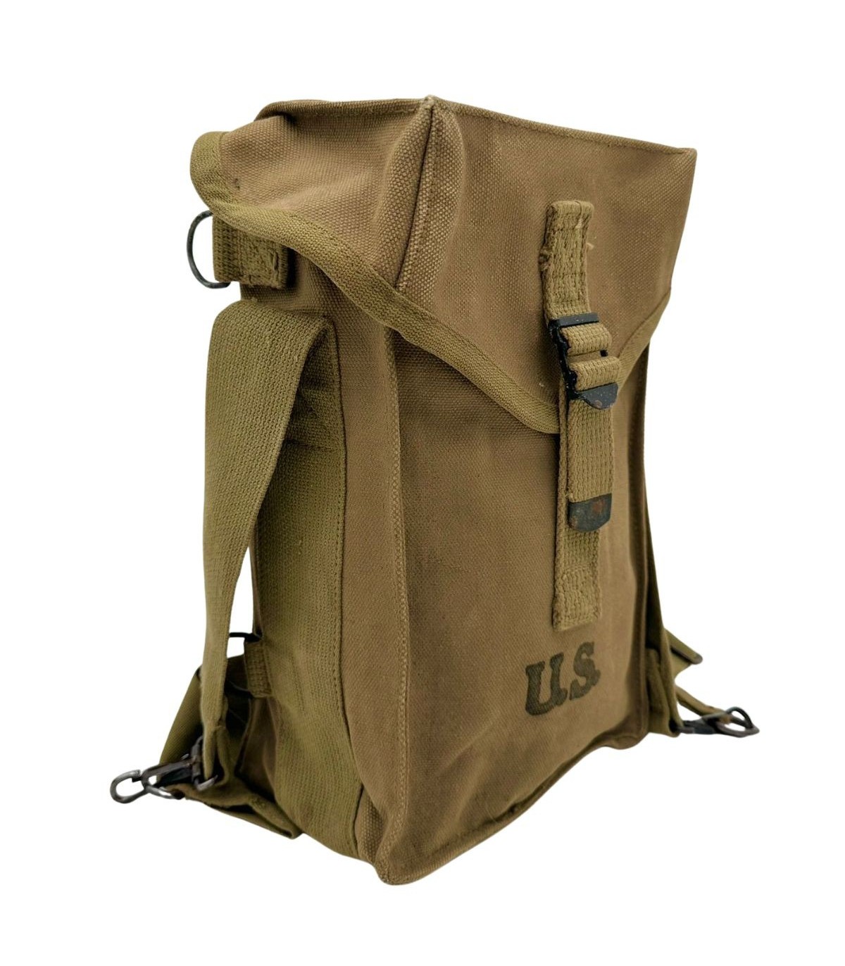 La General Purpose Bag (souvent appelée musette GP) est l'un des accessoires les plus polyvalents du GI. Initialement conçue pour transporter des munitions (clips de Garand, chargeurs de Thompson, grenades), elle fut rapidement détournée par les soldats pour transporter leurs effets personnels, des rations ou du matériel de soin.