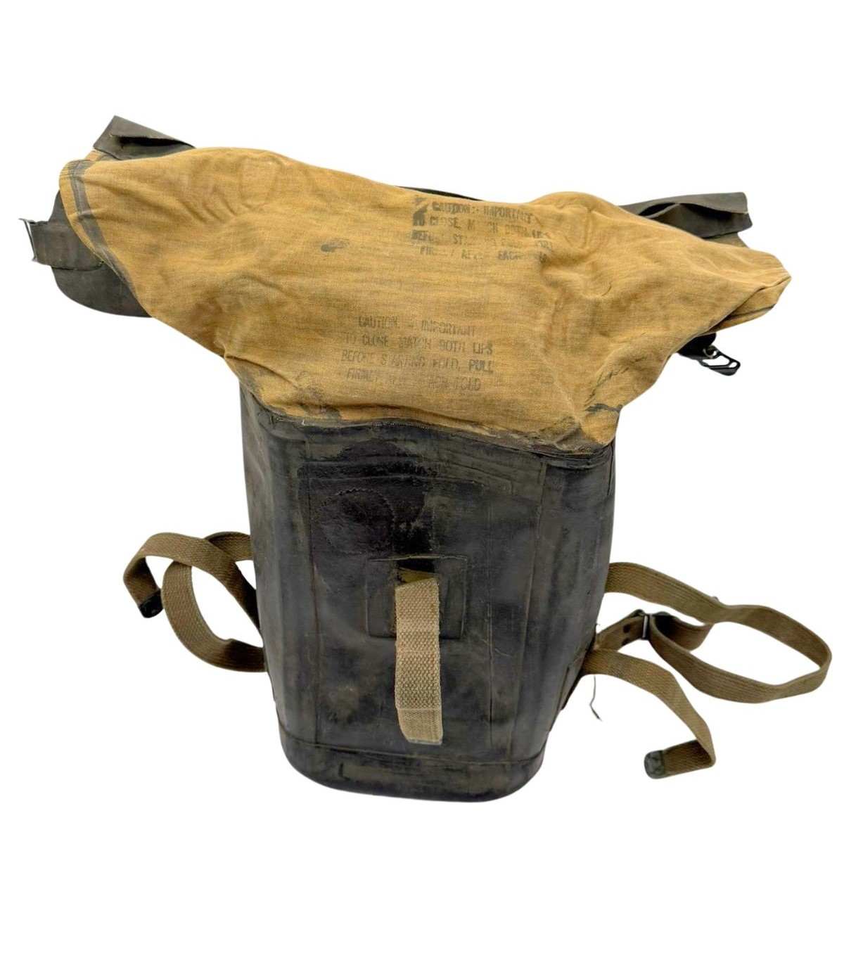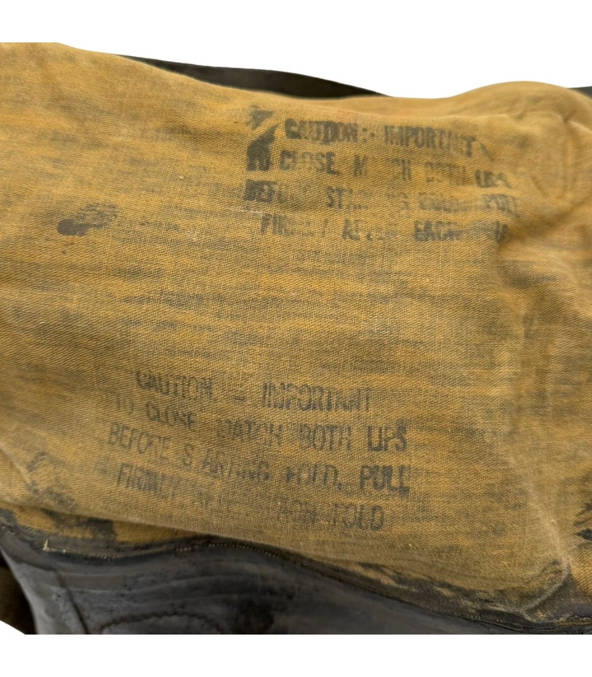 Fabriqué en toile caoutchoutée par RUBBER CO., il assurait l’étanchéité face aux progressions dans l’eau.