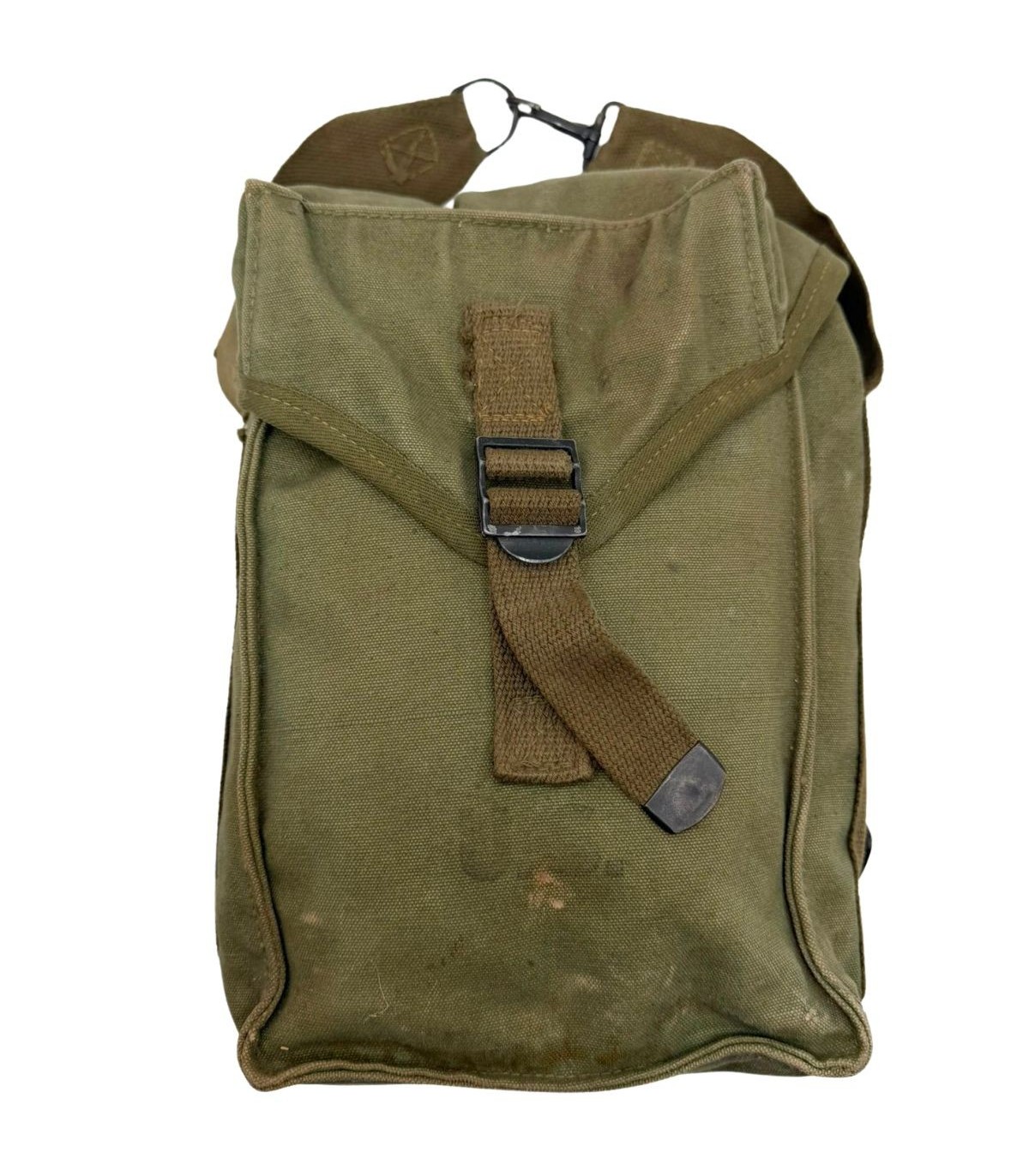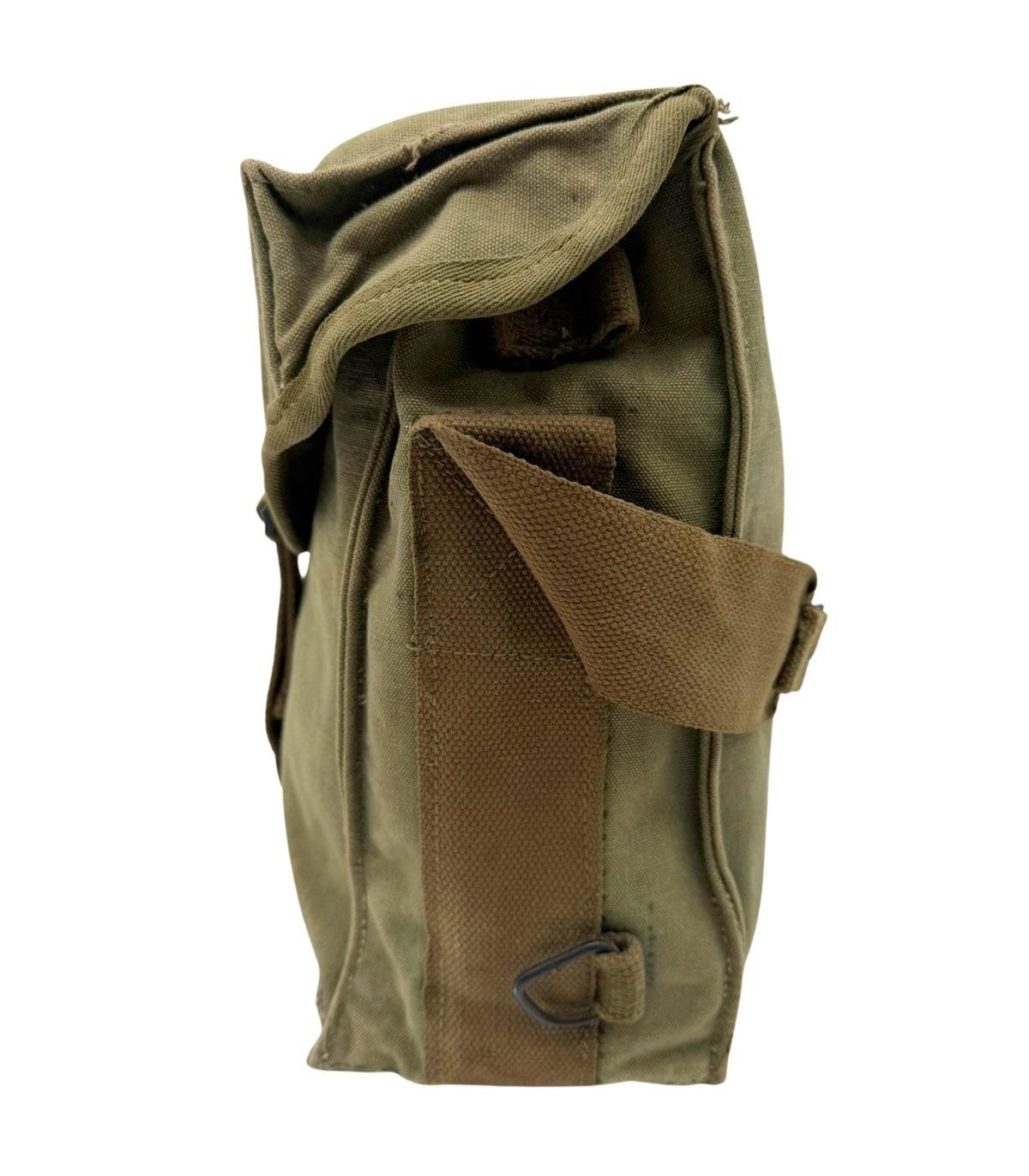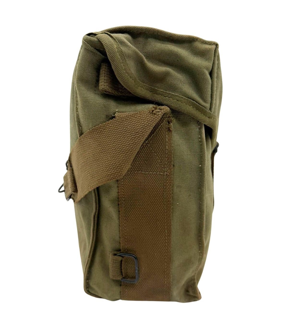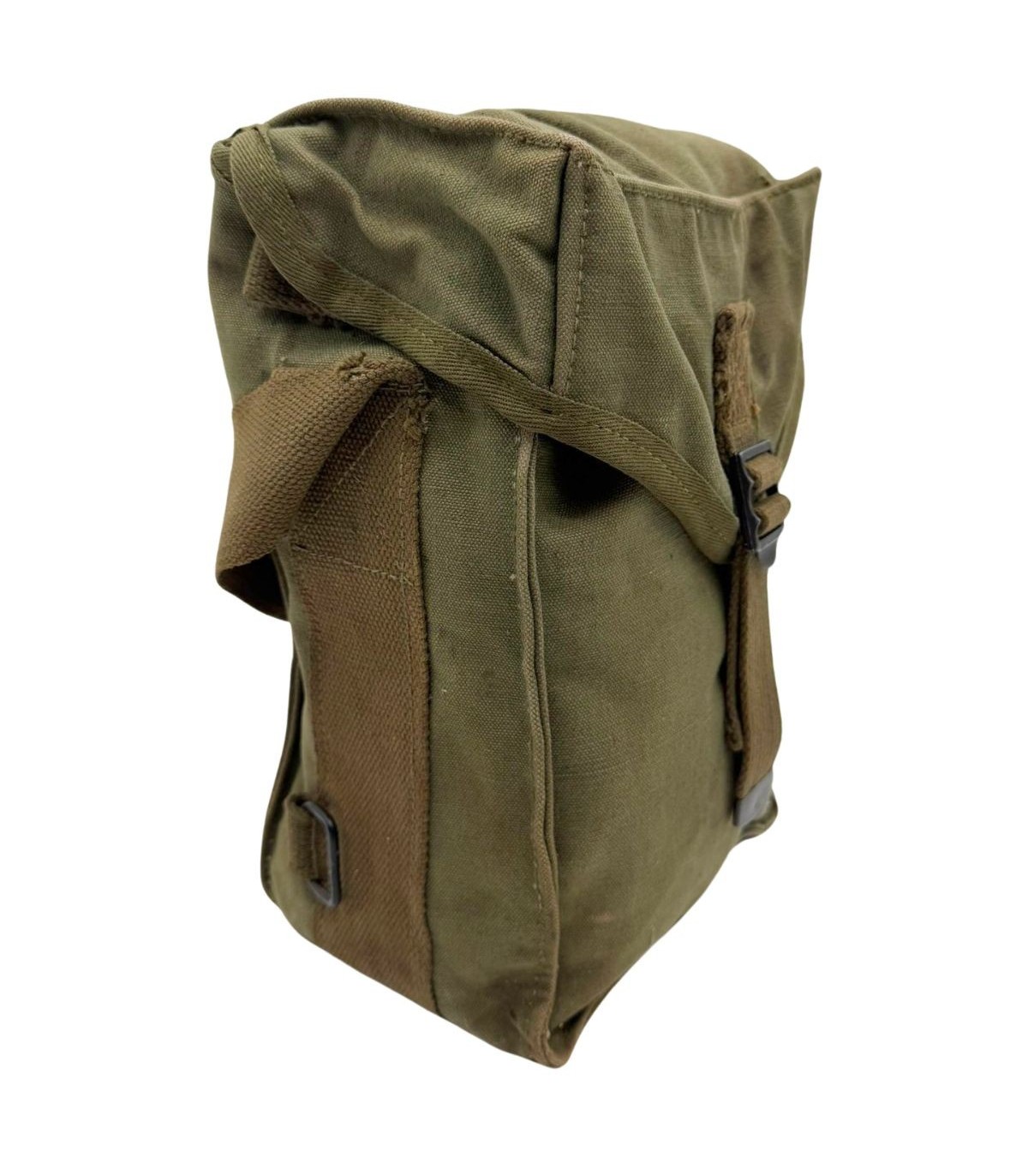 Matière : Toile de coton lourde (Canvas) de couleur Olive Drab n°7 (OD7 - vert foncé), typique des productions de fin de conflit.
