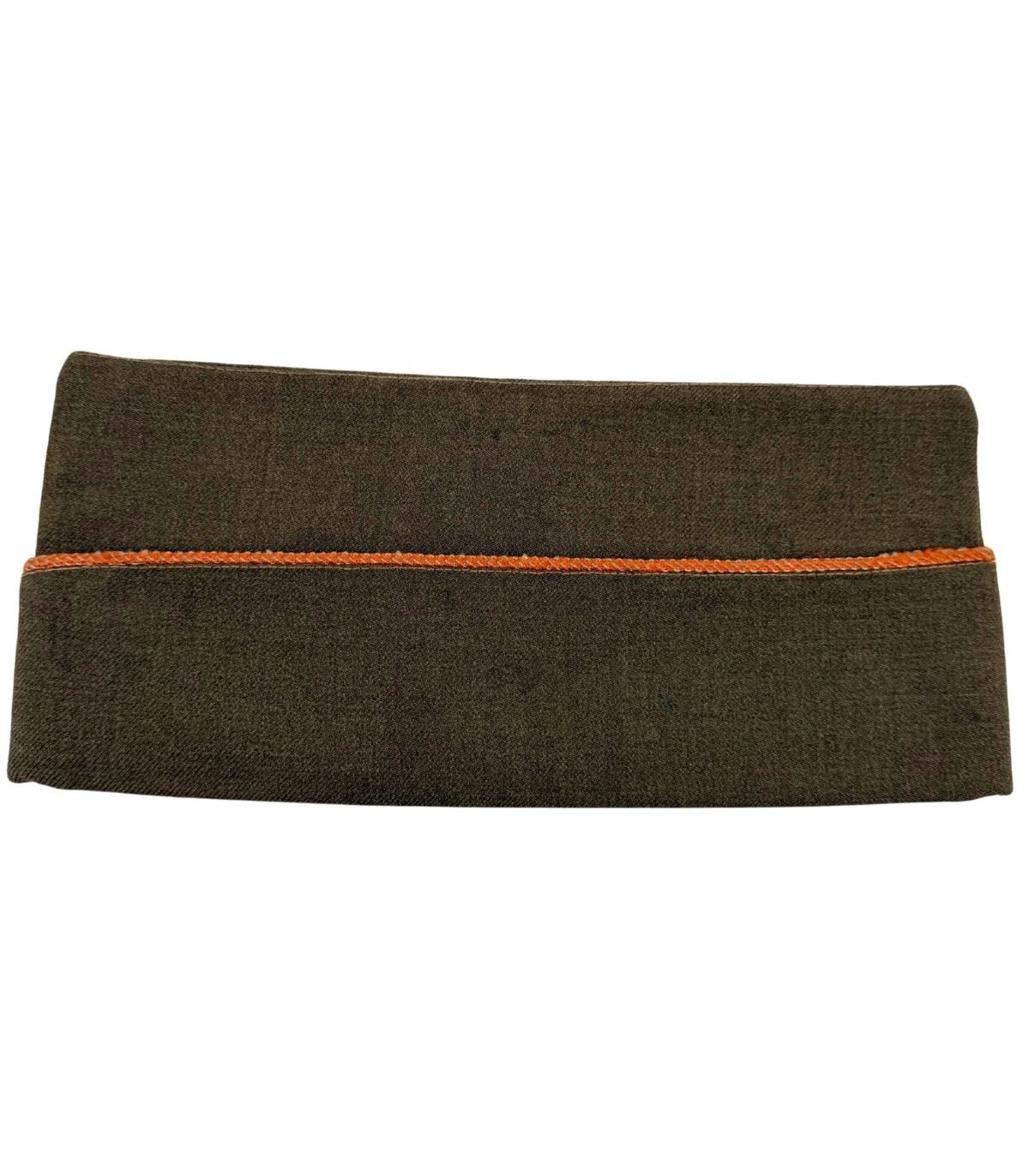 Authentique Garrison Cap en coton sergé (Light Shade O.D.3) avec liseré orange et blanc réglementaire du Signal Corps. Les Transmissions, nerf stratégique des opérations alliées de 1944-1945.