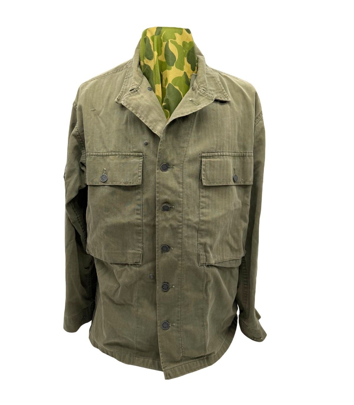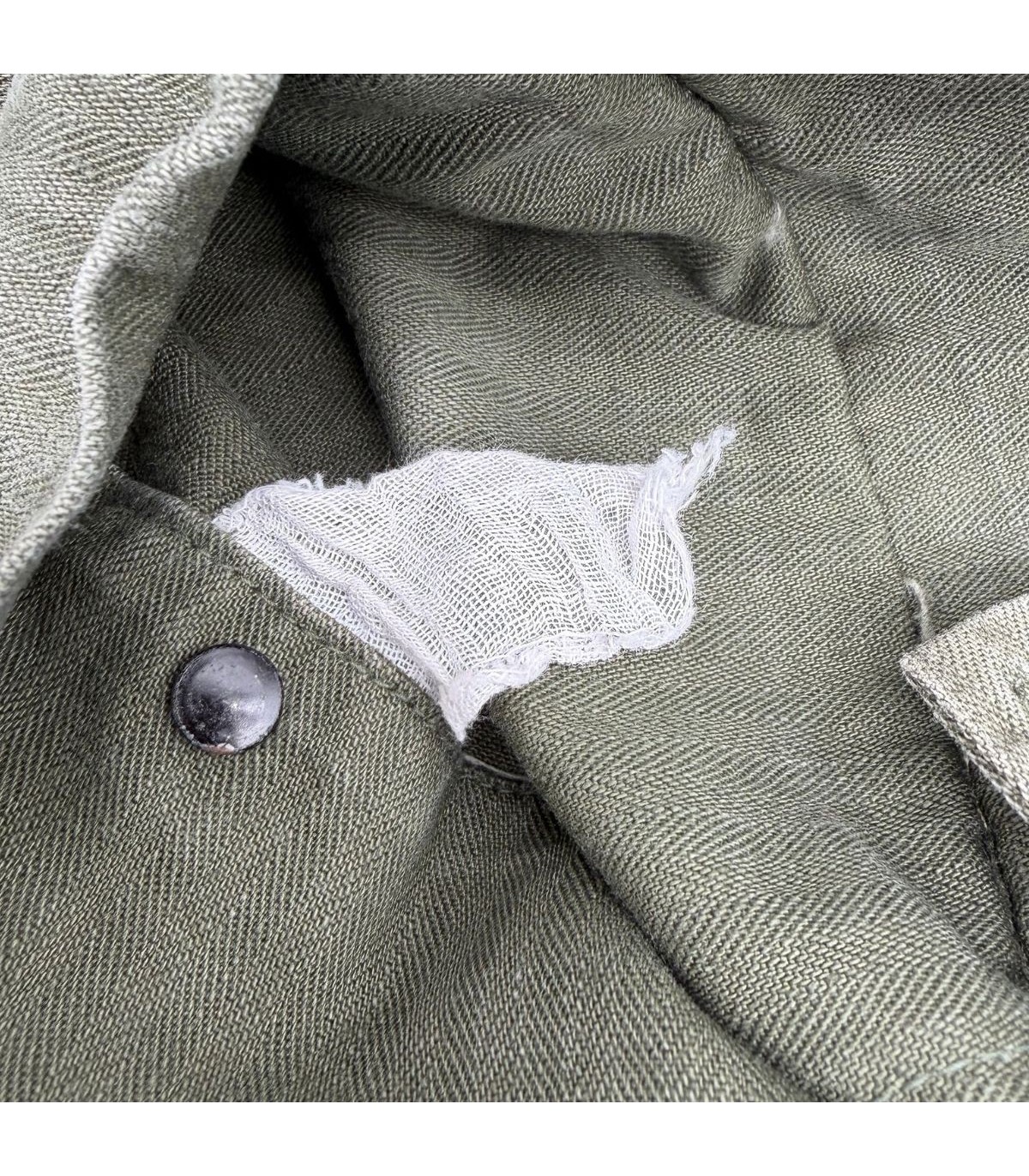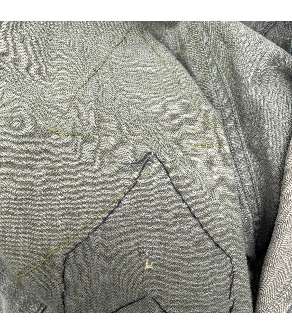 État : En parfait état de conservation. Le tissu a gardé sa couleur OD d'origine et ne présente aucune déchirure ni réparation.