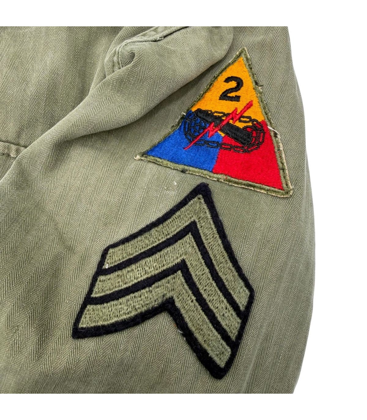 Insignes d'élite : Patch de la 2nd Armored et galons de Sergent montés d'époque.