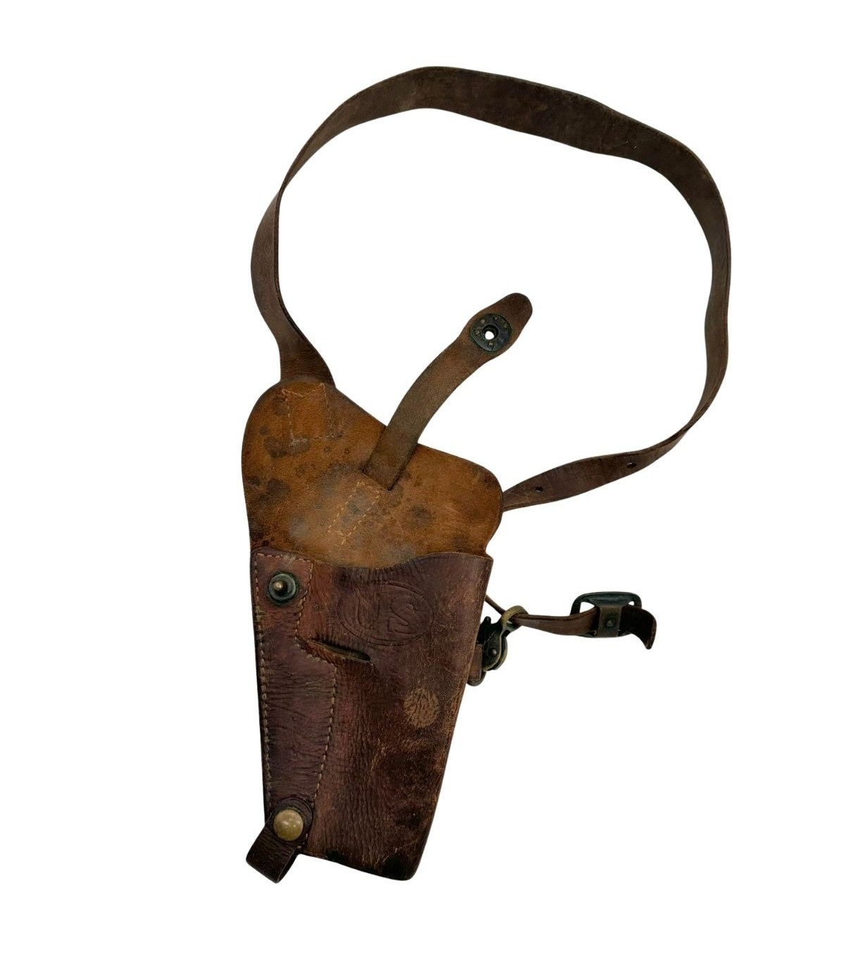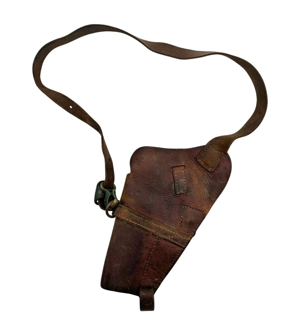 Nous vous proposons une pièce rare de l'équipement de portage de la Seconde Guerre Mondiale : l'Holster d'Épaule Modèle M3. Ce modèle était spécifiquement conçu pour les pilotes, les équipages de chars et les troupes aéroportées, permettant de porter l'arme de poing (Colt M1911/M1911A1) confortablement sans interférer avec l'équipement de brelage ou les mouvements en espace confiné.