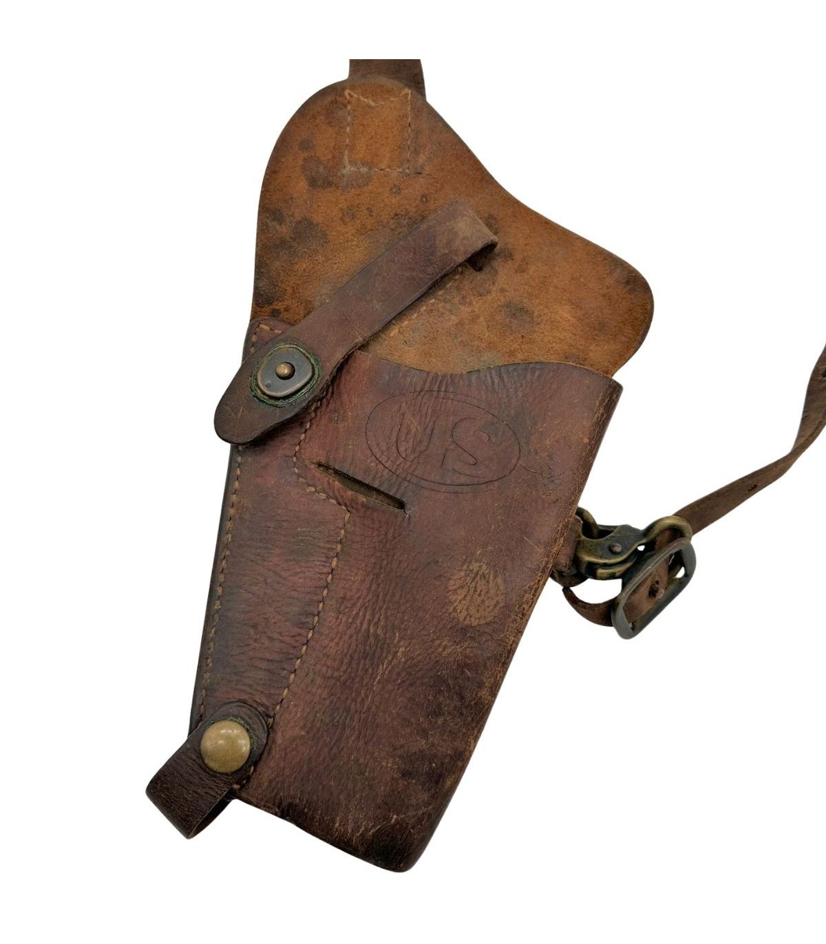 Superbe holster d’épaule réglementaire M3, fabrication BOYT 1943, 100 % authentique Seconde Guerre mondiale. Modèle utilisé par les équipages (pilotes, tankistes, troupes aéroportées) pour le port du Colt M1911/M1911A1.