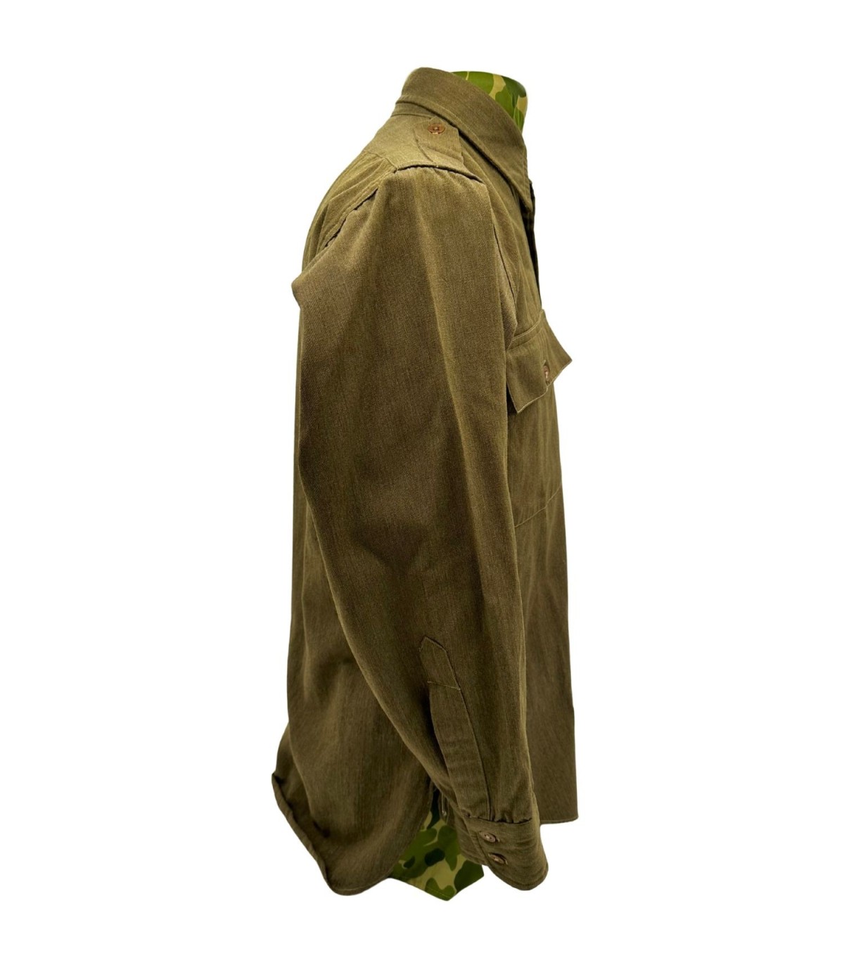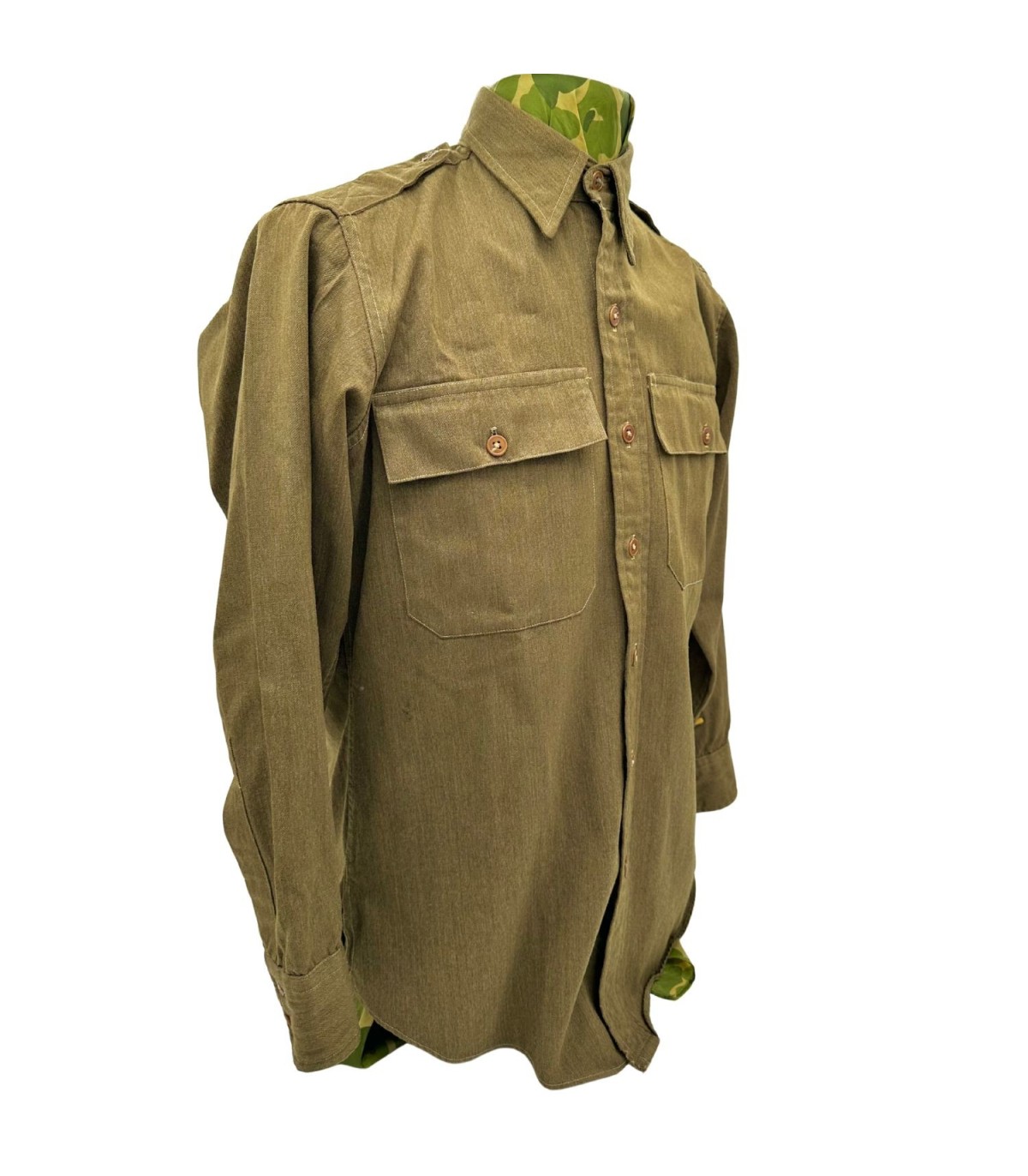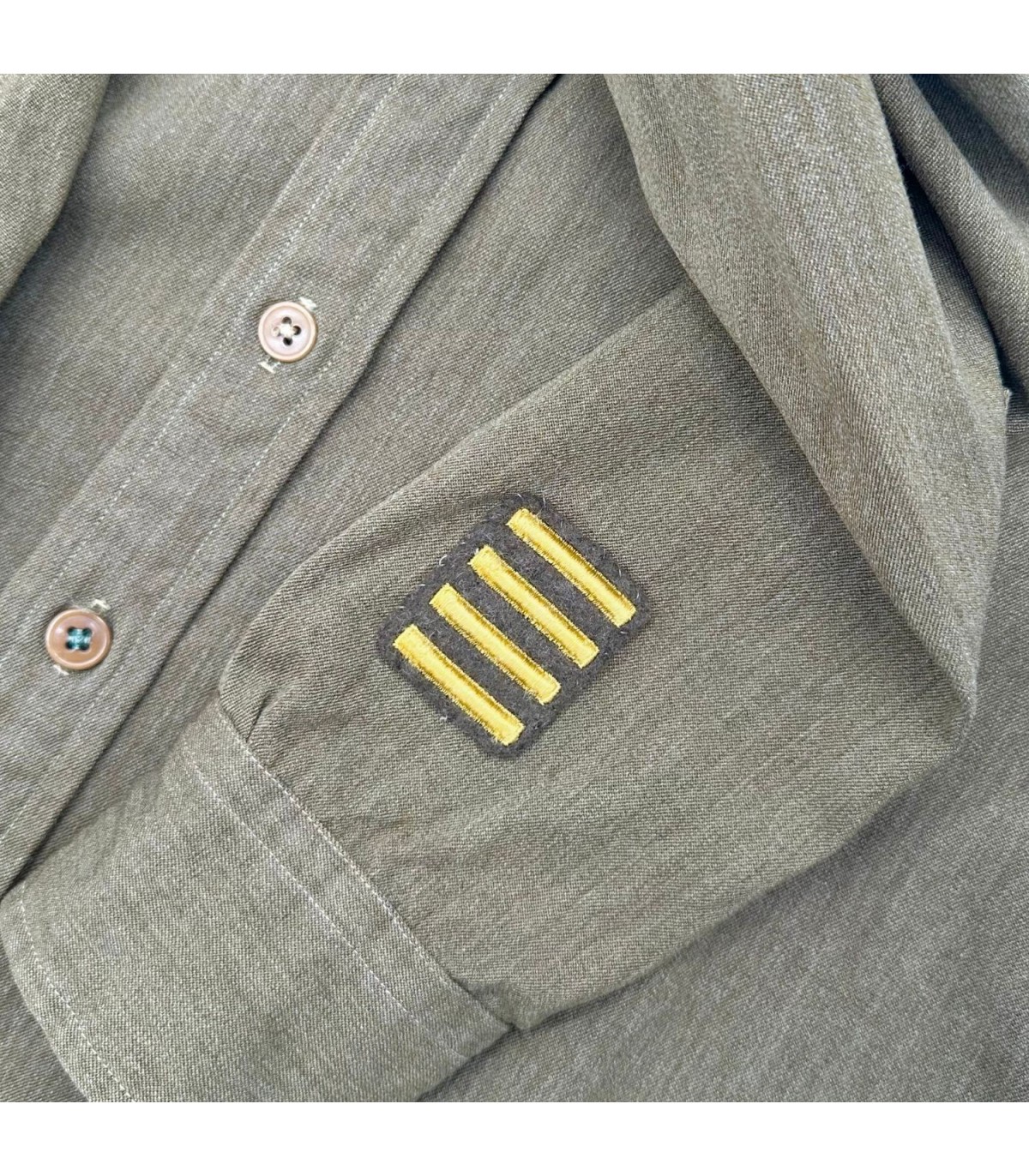 Chaque détail – du col pointu aux boutons d’origine – témoigne du savoir-faire textile militaire américain et du caractère historique de cet uniforme.